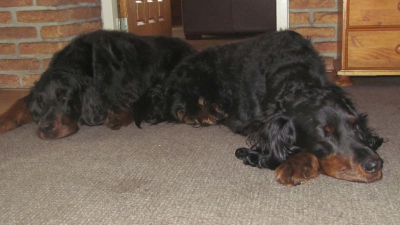 De dames na de wandeling...snuffel de snuffel, zijn er nog muizen??