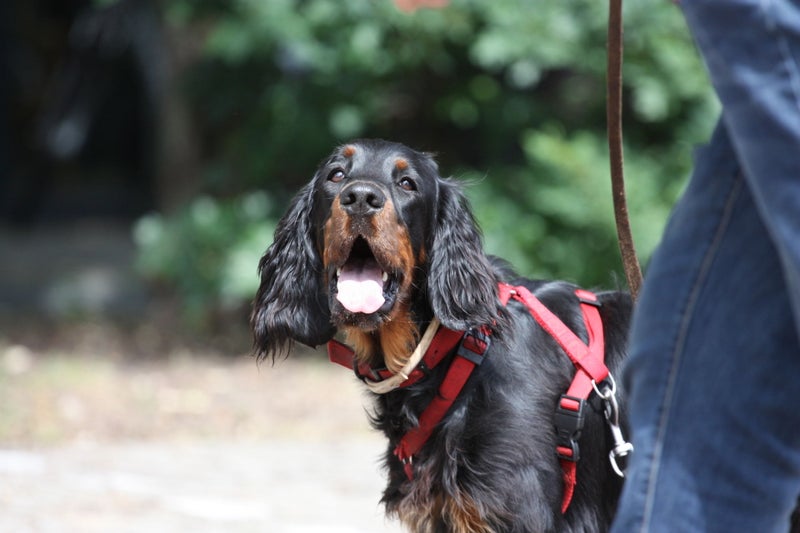 Bo aan de riem, ze wil zooo graag met Abby en Alistair mee. Foto genomen met telefoon...