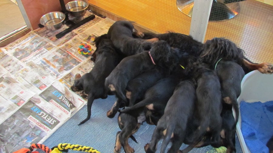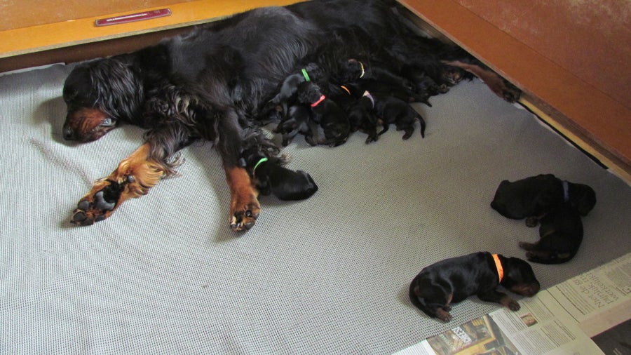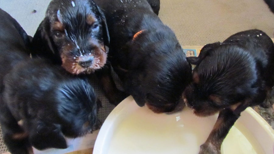 01/11/2017 Bo mag de bakken uitlikken, wanneer de puppy's genoeg hebben.
