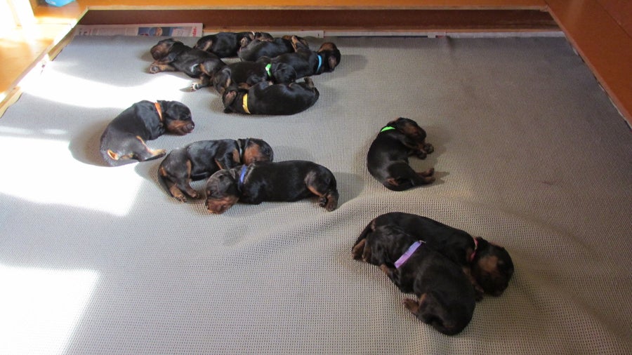 Foto's pups D - nest, van Moon en Bo.
